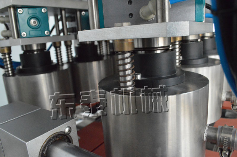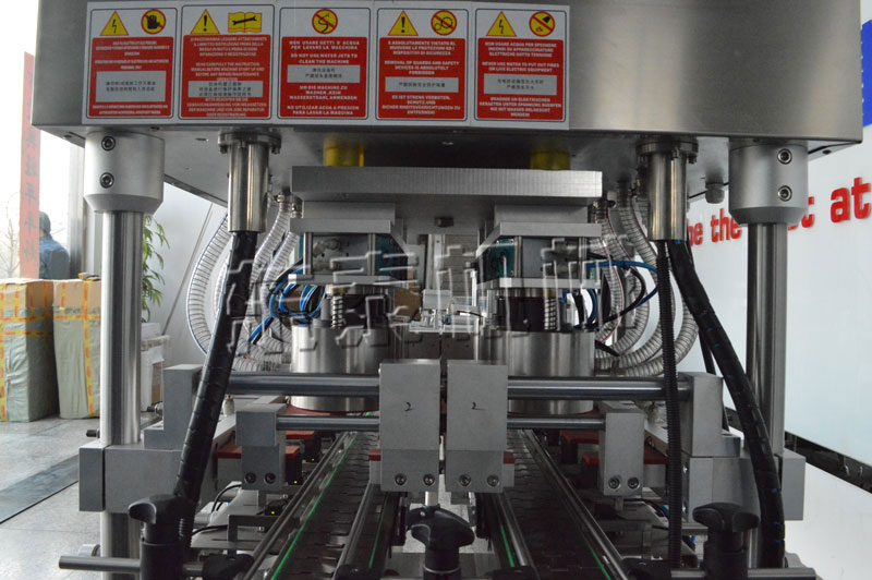 a.双排八工位真空旋盖机储盖容量大,低位膝盖,底部添盖,节省人力,降低劳动强度;